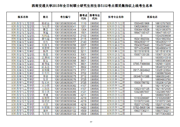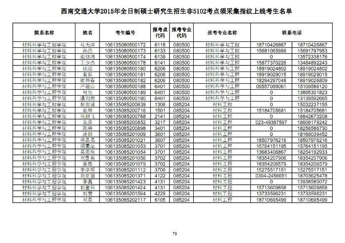 韦德官方网站2015年全日制硕士研究生招生非5102考点须采集指纹上线考生名单