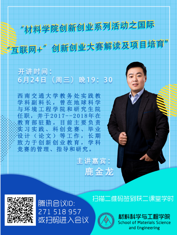 2020年6月24日19:30,团建中心面向全校师生,于线上成功举办了“bevictor伟德官网创新创业系列活动之国际‘互联网+’创新创业大赛解读及项目培育”讲座,同时作为bevictor伟德官网2021届毕业生就业指导系列活动之一,本次讲座特别邀请了韦德官方网站教务处实践教学科副科长鹿金龙老师主讲。鹿老师目前主要负责实习实践、科创竞赛、毕业设计(论文)等工作,长期致力于创新创业教育,学科竞赛的管理、指导和研究。