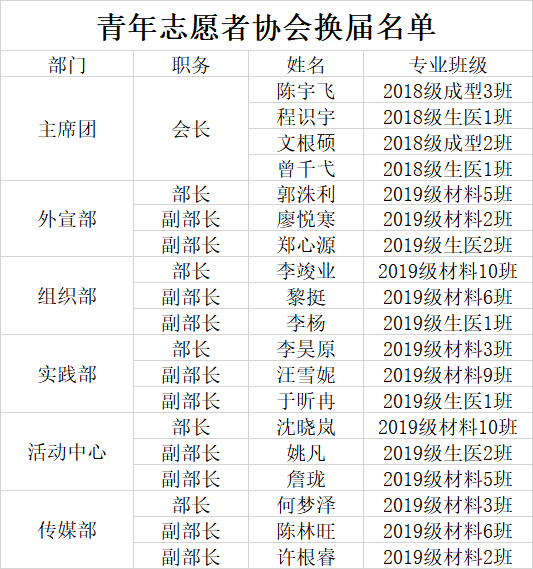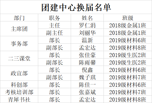 经过为期两周的员工自主申请、线上答辩、民主投票,现将bevictor伟德官网团委部分员工组织(团建中心、青年志愿者协会、新闻中心、事务中心)换届结果公示如下: