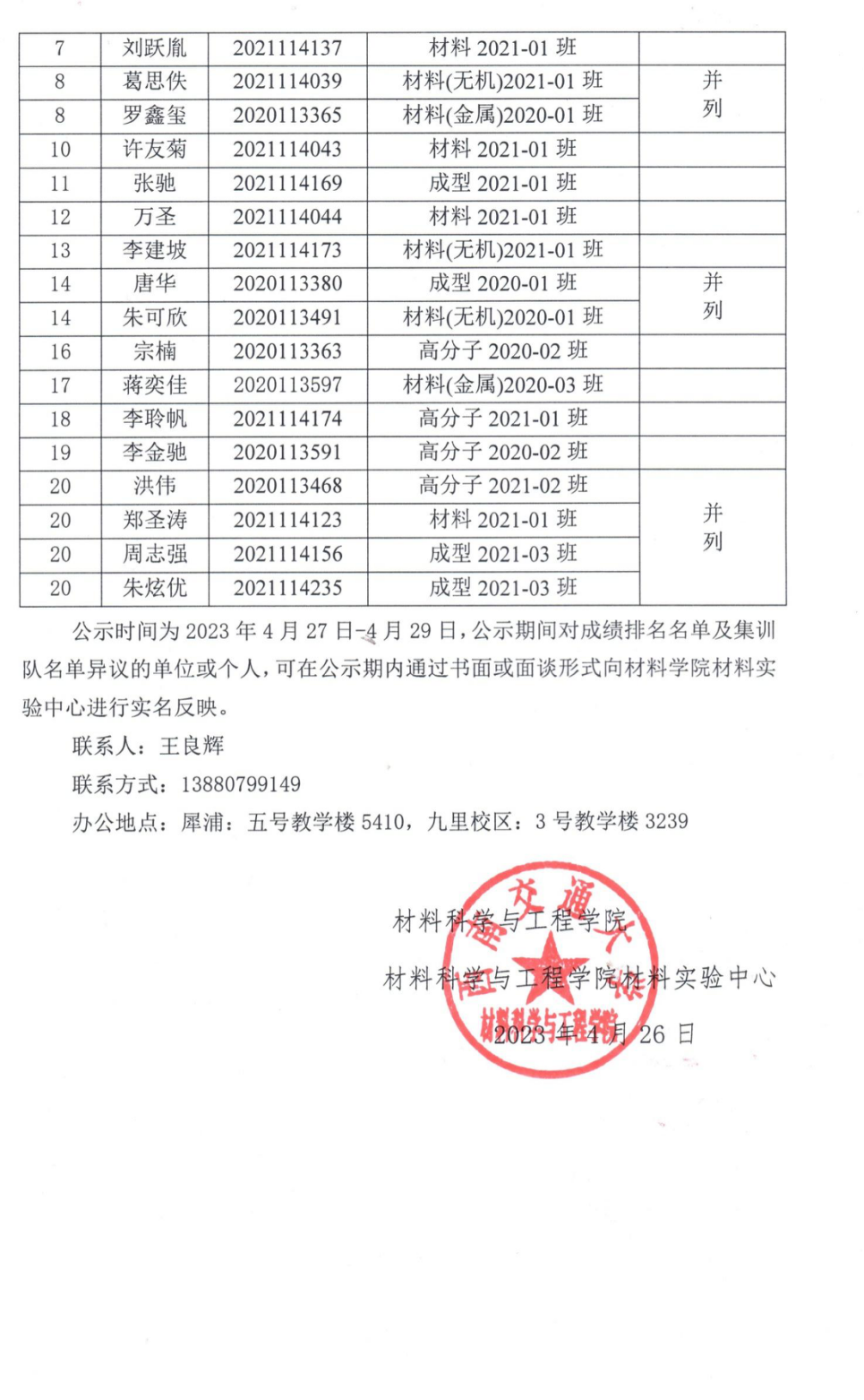 比赛名次公示(前100名)及省赛、国赛集训队名单公示