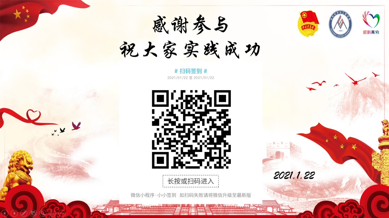 2021年1月22日,材料青协于19点准时举行了云会议“老员工寒假‘返家乡’调研社会实践活动出征仪式暨急救培训”,青协多名成员以及各实践队负责人参加此次会议。