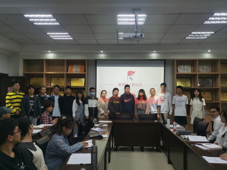 然后进行了新发展团员的入团仪式,由黄德明书记带领新团员进行入团宣誓,在同学们紧握右拳,铿锵有力地读完入团誓词后,许欢老师和各班团支书为其佩戴上团徽。