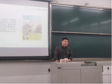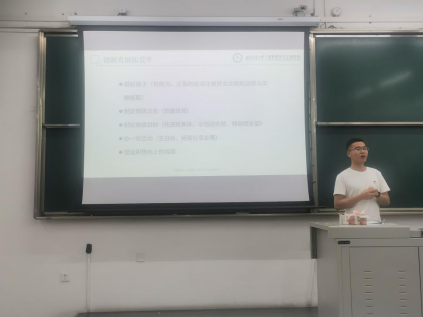 最后孙诗然同学给大家分享了班级学风建设的方法,如建立自习奖惩制度、建立学习互督小组以及为进步员工设置奖励基金等,并在讲到时间管理时为同学们带来了二十四枚金币法、四象原则法等珍惜时间的方法。在分享尾声中,他这样说到:“要做一个有强烈目标性的人,不能做一个强烈目的性的人,要明白自己为了什么而努力,为自己热爱的事去付出。”