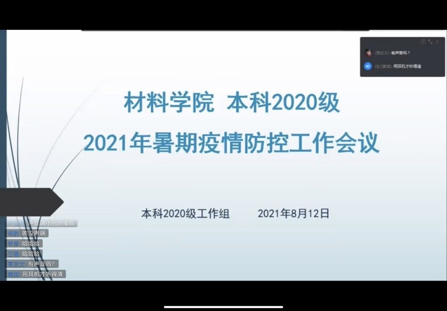 为落实公司、公司关于暑期员工疫情防控工作要求,2021年8月12日下午4点,材料本科2020级召开暑期第一次年级大会。辅导员老师郑纪伟、杨婷,以及2020级全体员工300余人参加大会。