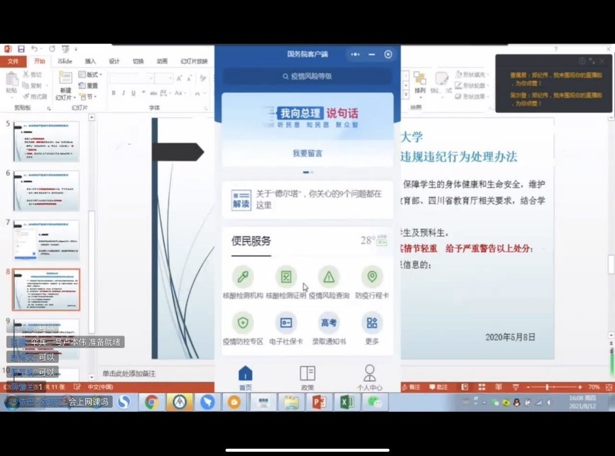 首先,辅导员老师郑纪伟向员工们传达公司、公司疫情防控相关要求,重点强调做好每日健康打卡工作,要求提前返校同学们按照公司规定返校,并带领同学们学习《韦德官方网站新冠肺炎疫情防控期间员工违规违纪行为处理办法》。