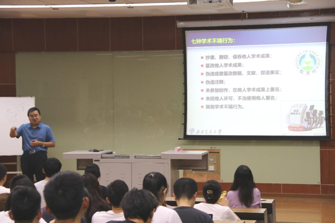 为全面提高公司研究生的安全意识,强调研究生学术诚信的重要性,2021年9月29日晚19时,2021级全体研究生于九里校区J4104教室开展学术诚信教育活动。本次会议由辅导员罗丹主持,bevictor伟德官网王勇教授主讲。本次活动旨在加强研究生学术诚信教育,强化员工诚信意识,营造良好的学术氛围;并让同学们了解到学术研究的底线,必须严格坚守学术诚信,自觉抵制学术造假行为。