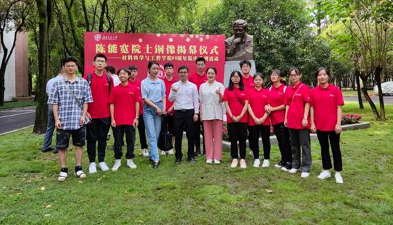 2021年9月25日星期六上午10:00 材料六班团支部十一位同学参加了陈能宽院士铜像揭幕仪式,学习陈能宽院士“材料报国”的精神。本次仪式分为生平介绍、铜像揭幕、员工和教师代表发言、党委书记王顺洪致辞。在仪式结束后,六班同学一起探讨了铜像的内涵,并合影留念。
