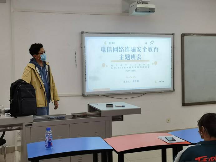首先,章春军强调防范电信网络诈骗要入心,看清诈骗套路,以身边实际案例提醒同学们,诈骗就在身边,要提高防范意识,学会抵制各种不良诱惑。同时,章春军也提醒大家要重视疫情防控和宿舍用电安全,每位班干部要及时、准确地向同学们传达会议内容。