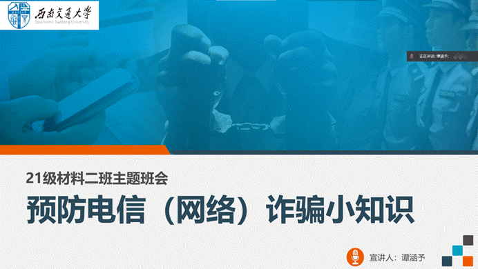 最后,bevictor伟德官网本科2021级13个班级按要求召开《安全教育主题班会——预防电信诈骗》,传达班团例会会议内容,重点普及网络诈骗相关知识,以身边的真实案例,提醒同学们要时刻防范网络电信诈骗。