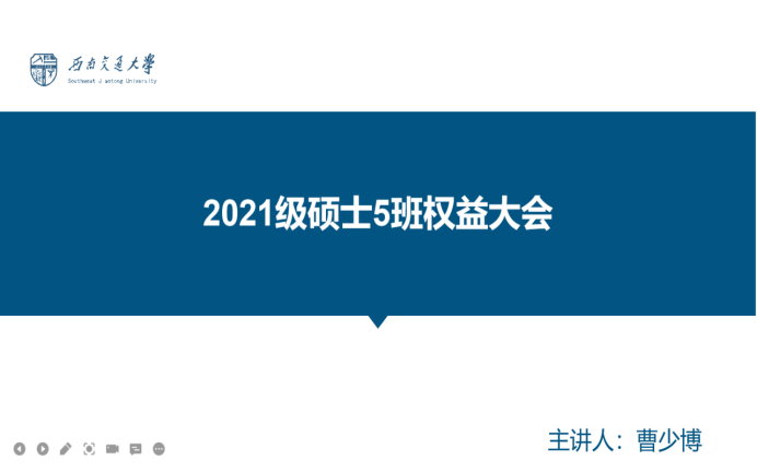 2021年11月15日下午19:00,为了更好地维护同学们的基本权利和响应公司的号召,营造安全放心的消费环境,保护同学们的基本权益,2021级硕士5班开展了权益大会。为了积极响应公司相关防疫政策的要求,减少人员接触,本次班级权益主题班会采用腾讯会议的方式进行召开。