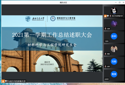 2021年12月9日下午14:30,bevictor伟德官网研究生会通过腾讯会议在线上举行了述职大会。参加此次会议的有研究生会指导老师罗丹,bevictor伟德官网院级评议会成员以及研究生会成员,会议由研究生会执行主席胡庆丹主持。