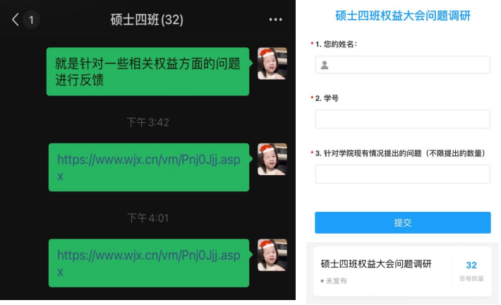 本次研究生提案调研活动以班级为单位线上开展,通过线上讨论,调查问卷收集,PPT总结展示等几个环节开展,各个班级同学都踊跃参与,积极发言,为本次提案收集提供了宝贵意见。