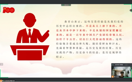 为深入落实党史学习教育,2021年11月12日,2021级硕士6班团支部以“学习党的十九届六中全会精神”为主题,积极收听收看中共中央举行的新闻发布会,认真学习党的十九届六中全会精神,与会人员就各自感受进行讨论。