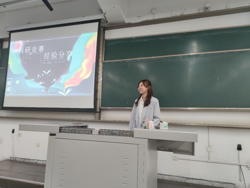 会议第一项,龚波、周孟雪向同学们分享自己的大学学习经验方法。龚波对2021级大一第一学期期末成绩和四六级成绩进行分析,并通过自身学习经验鼓励同学们,认真对待专业课程、一鼓作气通过六级。龚波提出,作为老员工,要做到认清自己、认清努力、认清他律以及结交优秀的人。周孟雪则向同学们分享自己的科研竞赛经验,鼓励同学们积极参与到科创竞赛中来。同学们对学长学姐的分享深有感触,反响热烈,掌声不断。