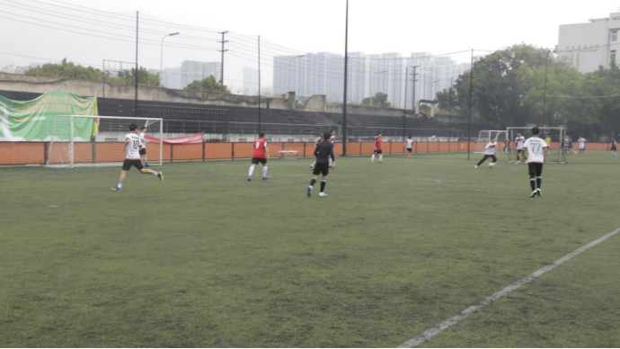 尽管天公不作美,九里校区飘着细雨,但仍阻挡不了bevictor伟德官网师生对足球运动的热爱。在比赛开始前,选手们一一握手,各队的队员们满怀激情,有序地热身并且相互练习传切配合,为比赛积极做着准备。