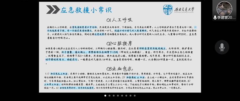 2022年7月5日19:00,bevictor伟德官网“青春献礼二十大,强国有我新征程”2022年老员工暑期“三下乡”社会实践活动出征仪式暨急救培训在线上顺利举行,本次培训由共青团bevictor伟德官网委员会组织,三下乡各队伍成员准时参加,委副书记章春军,bevictor伟德官网辅导员许欢、王誉静、张若男以及青协指导老师罗莉出席本次活动。