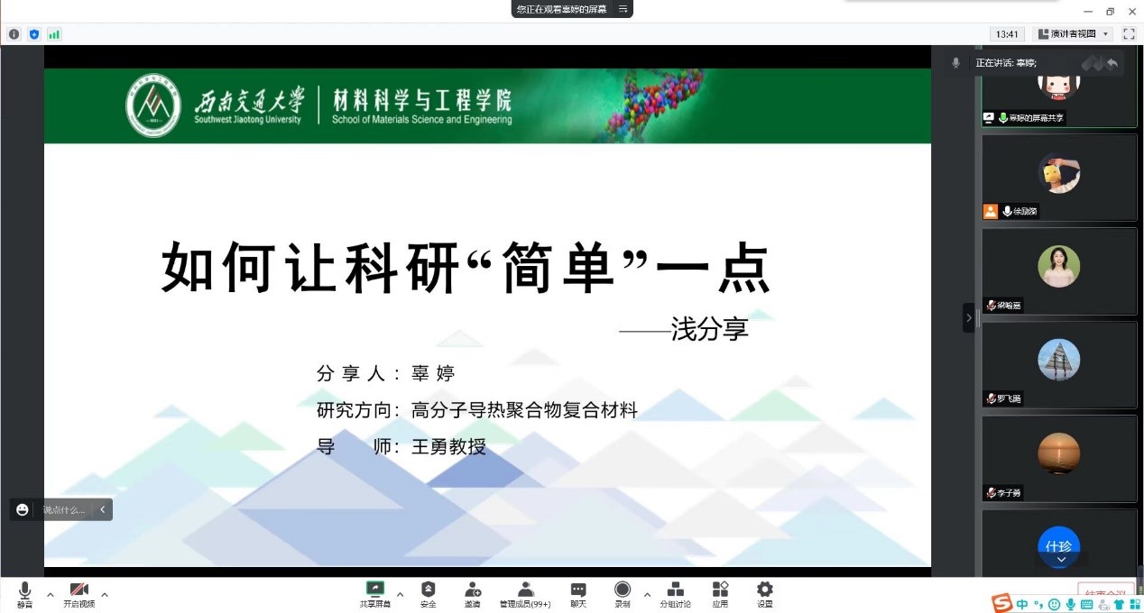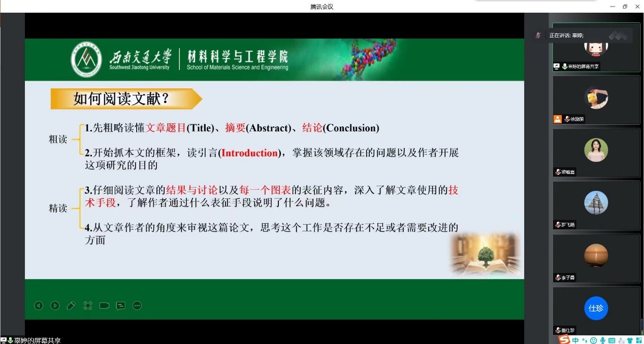 为帮助公司研究生更好开展科研活动,端正自己的科研态度,营造积极的学术氛围,切实帮助同学们解决目前存在的科研疑惑,适应研究生科研学习新环境、新节奏、新生活。在疫情防控常态化背景下,bevictor伟德官网2022级研究生新生“认识科研生活,规划职业生涯”主题讲座于2022年9月15日晚上19时以线上方式如期开展。此次讲座由职业生涯导师、博士生辅导员梁喻嘉,2019级博士辜婷和研究生辅导员罗丹主讲,会议由2022级研究生辅导员徐励漪主持,全体研究生新生参加。