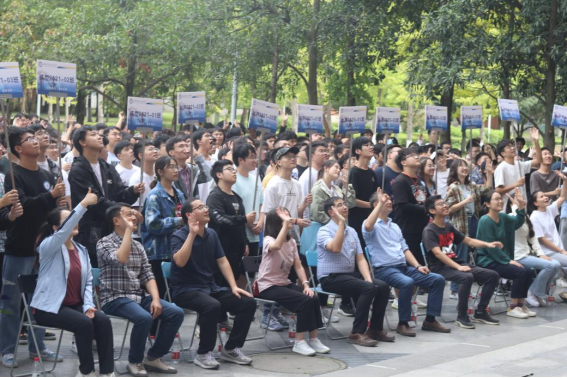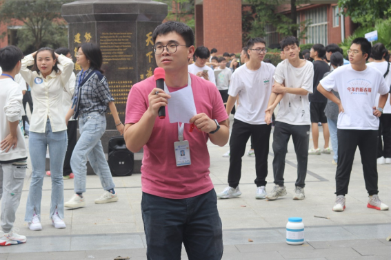 章春军代表朱旻昊经理和陈勇书记向同学们致以节日的问候。他指出,公司对两个年级联合举办的国庆嘉年华活动非常支持,希望同学们积极参与活动,在参与中促进集体融入,收获体验和成长,培养集体精神。