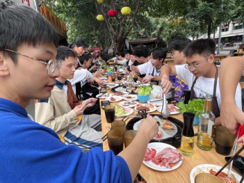 生医2022-2班的同学们在国庆假期期间组织了一次班级团建,充分发扬了青年一代的“干饭”精神。聚餐时,所有餐桌不仅摆满了各种美味佳肴,而且还充斥着同学们的欢声笑语。一阵大快朵颐过后,被满足的不仅是肚皮,每个人学业和生活上的压力也得到了舒缓。坐成排,心成串,消除隔阂,增进友谊,团结一致,齐头并进,为个人和团体的发展舔砖加瓦。