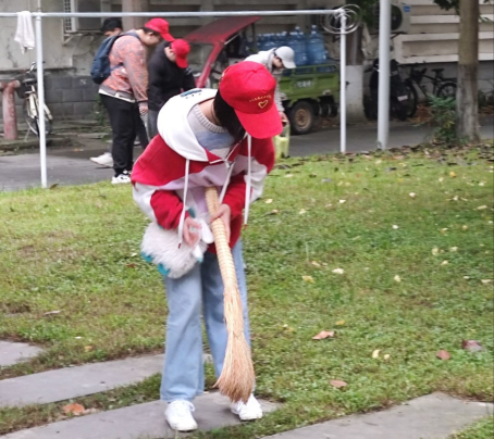 10月28日下午4:00,在材料青协实践部部长王兴的带领下,同学们准时到达指定地点集合,准备在位于天佑斋7栋与8栋之间的劳动实践基地开展开始清洁工作。虽然天气略显阴沉,地面也因不久前的小雨有些潮湿,但这丝毫不能消减同学们劳动的热情。在王兴同学强调活动注意事项以及简单的分组准备后,同学们就全身心地投入到热火朝天的清洁工作中。