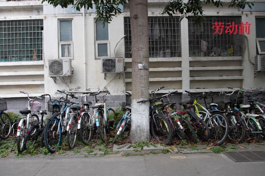 老师和员工们忙碌的身影在草坪上形成了一道独特的风景,每个员工都有分工,有的负责捡拾垃圾,有的负责归整落叶,有的负责整理摆放自行车。通过此次劳动实践,园区的环境得到明显改善,干净整洁,让美丽交大校园焕发光彩!