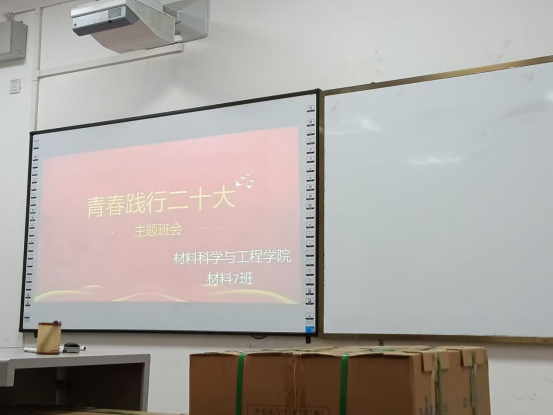 习近平总书记在党的二十大报告中指出——“青年强,则国家强。当代中国青年生逢其时,施展才干的舞台无比广阔,实现梦想的前景无比光明。”为响应二十大赋予青年的使命和集团对各班开展《开学第一课》班会的有关号召,材料2022-07班于3月16日下午在X4137开展了“不忘初心跟党走,青春践行二十大”的主题班会活动。本次活动由班长赵浩然主持。
