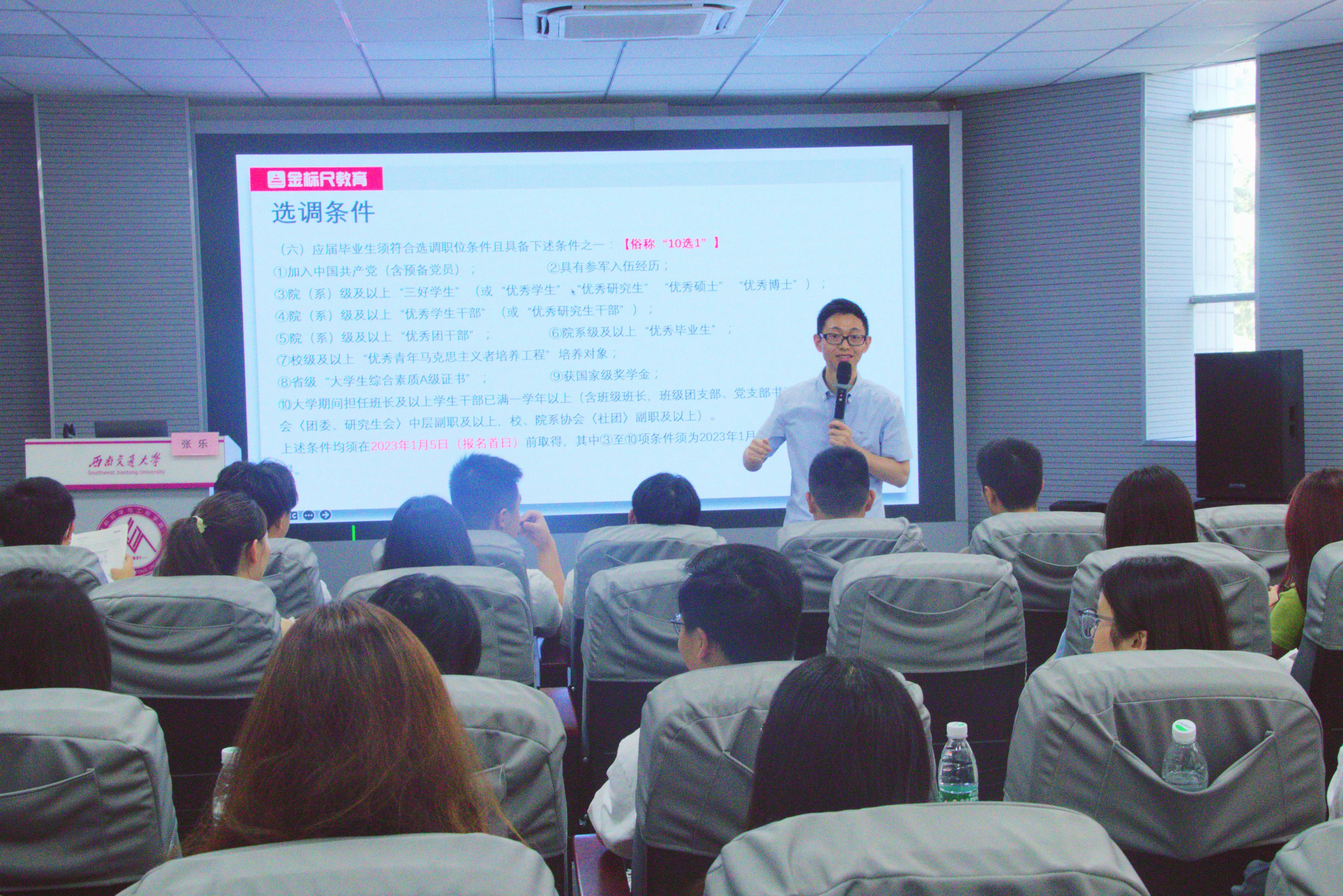 张乐介绍了选调生的基本概念,比如什么是选调生、选调生与公务员的区别、普通选调生和紧缺选调生的区别等。之后,他又深入浅出地为大家分析了各省的选调生政策,通过介绍,同学们对选调生这一概念以及选调政策有了基本的了解。