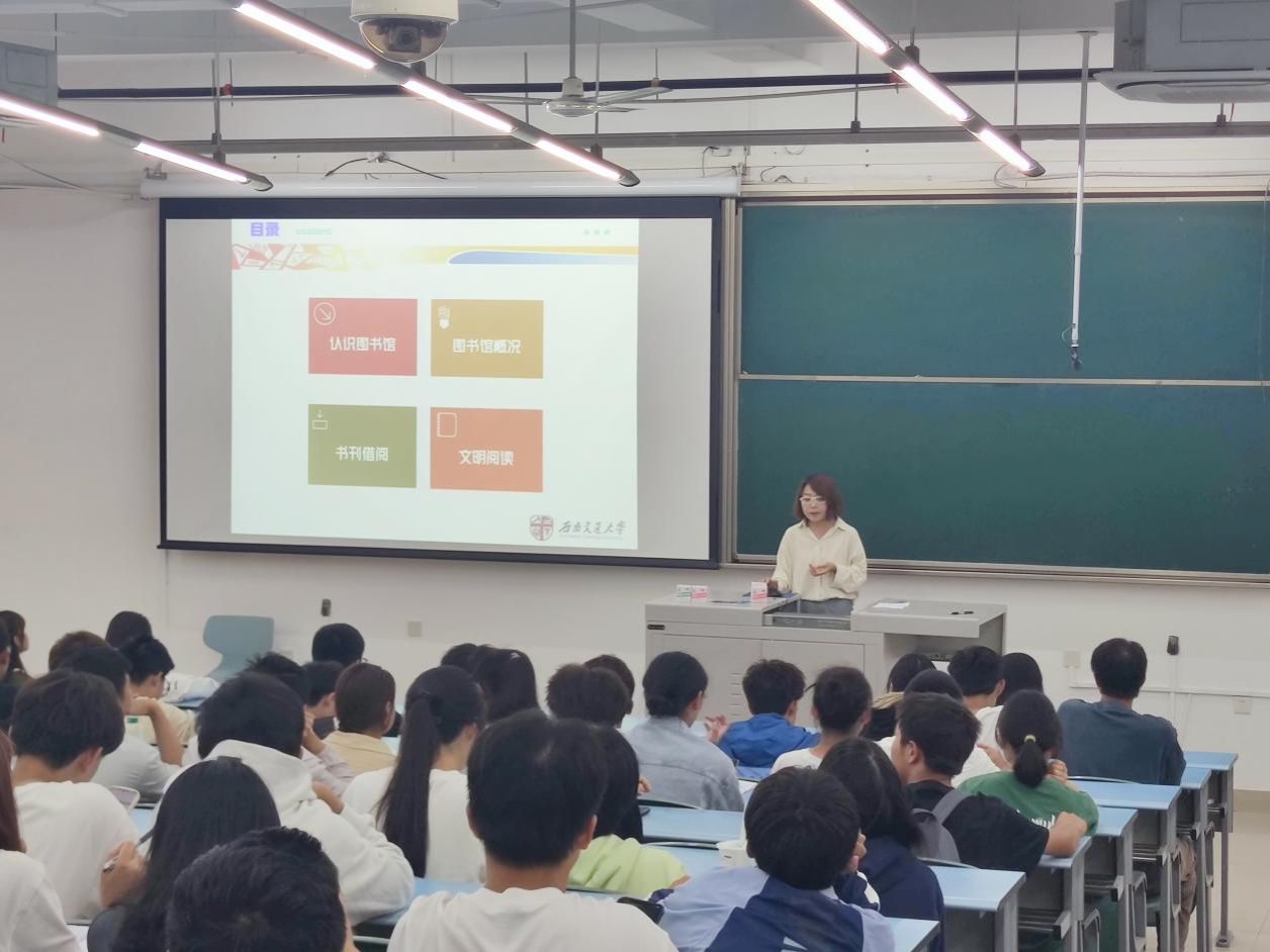 为使2023级新生尽快熟悉图书馆的资源和服务,更好地利用图书馆资源进行学习及资料查询,9月22日,公司召开了2023级新生入学教育——图书馆入馆教育。本次培训由图书馆馆员李颖老师主讲,参与此次培训的有2023级本科辅导员熊心怡及本科2023级全体新生。