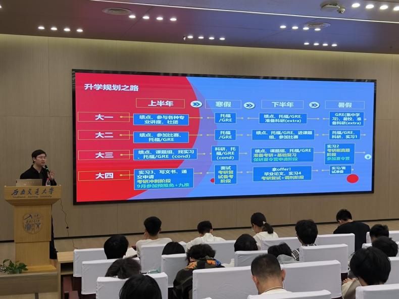 最后,熊心怡总结了从大一到大四的升学规划之路,帮助同学们更好规划自己的大学时光,从大一起便朝着目标奋进。