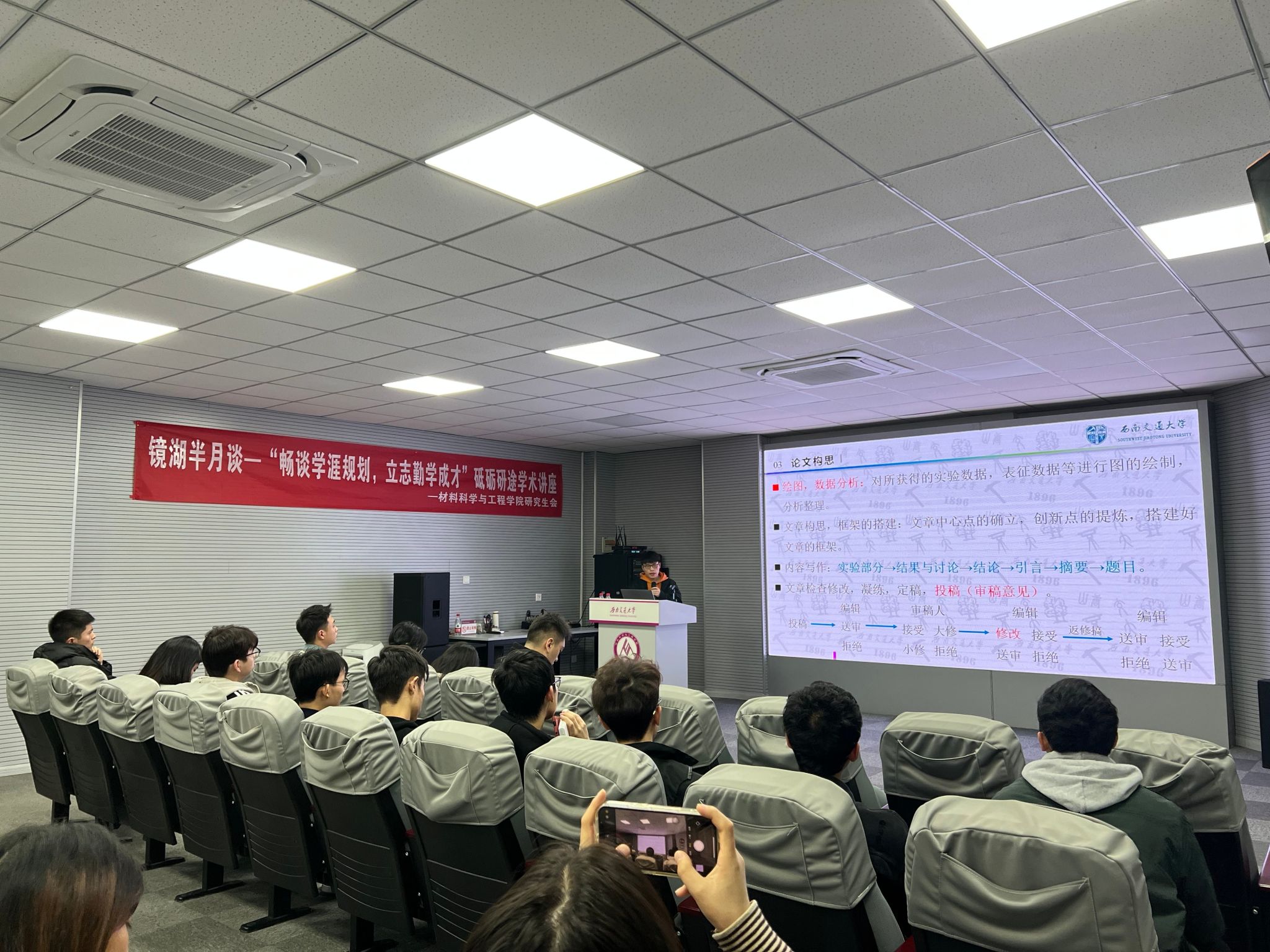 公司青年讲师团成员陈瑶同学从课题调研、实验开展和论文构思等方面展开讲述。建议同学们在研究生学习期间,早点动手实验并及时整理分析数据,勤加思考,与导师和师兄师姐讨论,同时告诫同学们切勿浅尝辄止,读研期间要有主观能动性,要针对性补充课题相关的基础理论知识,主动学习需要掌握的软件以及作图方法。