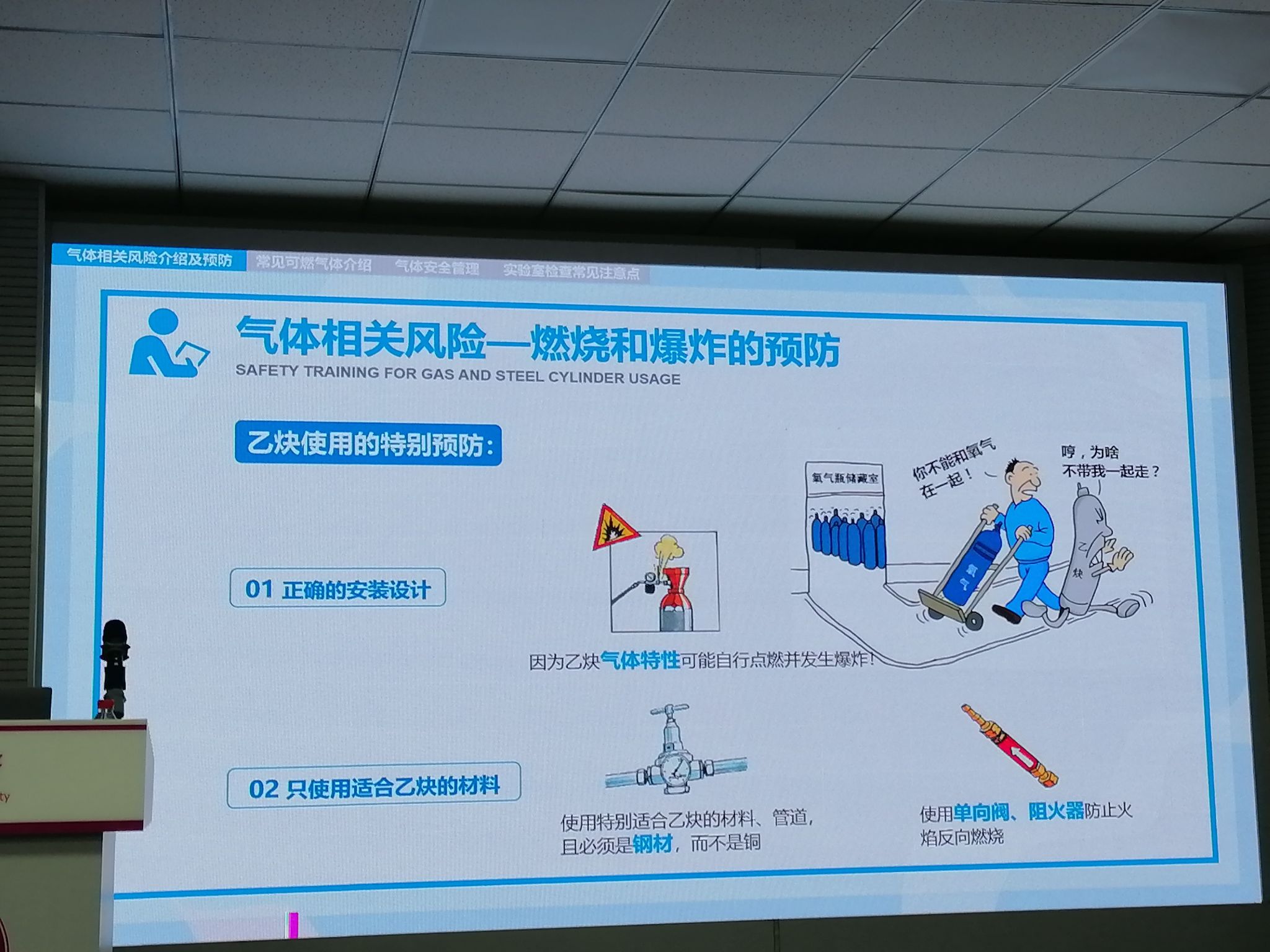 培训讲座正式开始前大家首先观看了《火车侠说安全》(实验室气瓶安全篇)的宣传片,接着李涛副经理结合自己多年分管实验室安全管理的工作经验和经历,强调了此次实验室气体及气瓶使用安全培训的重要性和必要性。