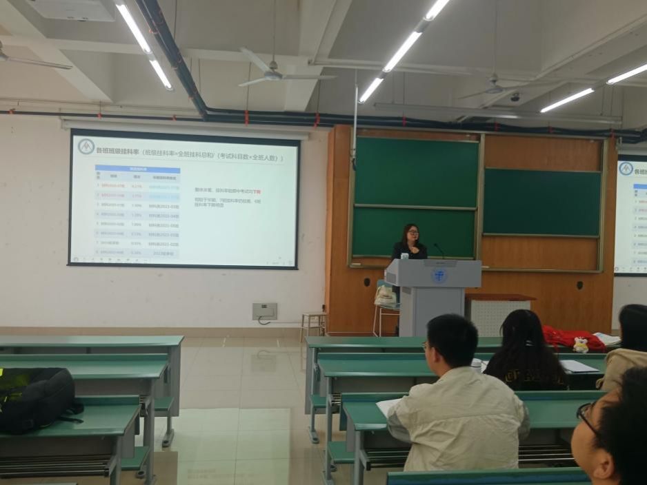第四部分,熊心怡老师分析了年级上一学期的期末考试成绩及四级通过情况。熊老师肯定了同学们上一学期的学习成果,同时指出同学们当前学业中存在的一些问题。熊老师以作为一名老师的身份,站在姐姐的视角,鼓励大家多多自我反省,提醒同学们工作学习脚踏实地,欢迎同学们和她谈心交心,也十分愿意为同学们排忧解难,成为同学们的大姐姐。