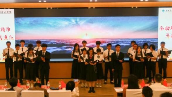 2022级无机非1班的同学们及其班导师楚珑晟,通过《科学精神永传承》的朗诵,让我们感受到了“两弹一星”功勋们的爱国精神、创新精神、求实精神和奉献精神,他们的故事激励着每一位青年学子。