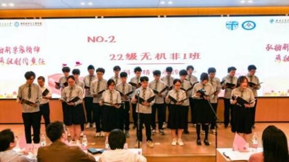 班团同心共展风采,精神内涵深入人心。本次比赛共有16个班级,400百多名同学通过视频录制参与初赛选拔。部分班级原创诗歌,歌颂科学家们的报国史诗,大家精心编排,气宇轩昂,生动展现伟大科学家精神内涵。经过公司认真筛选,最终共有10个班级,239名同学进入决赛。