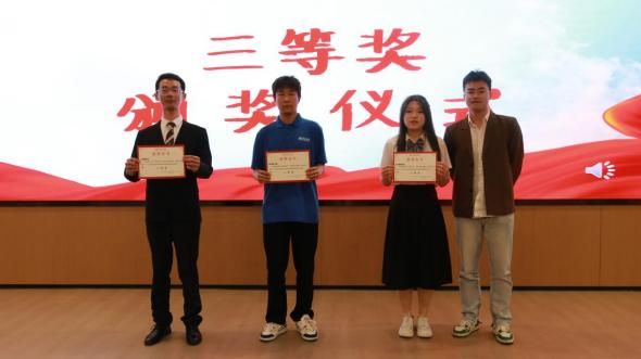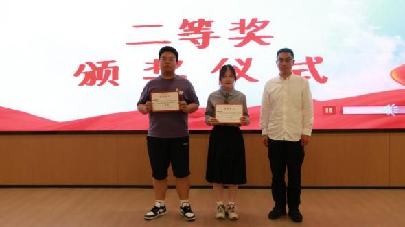 熊钰宣读比赛结果。薄琳、赵晨、袁文林、 王誉静等分别为获奖同学颁奖。比赛间隙还安排了两轮互动答题环节,现场观众根据主持人提供的线索举手抢答科学家姓名和重要贡献以及五四运动相关知识。同学们的积极参与将现场氛围推向高潮。