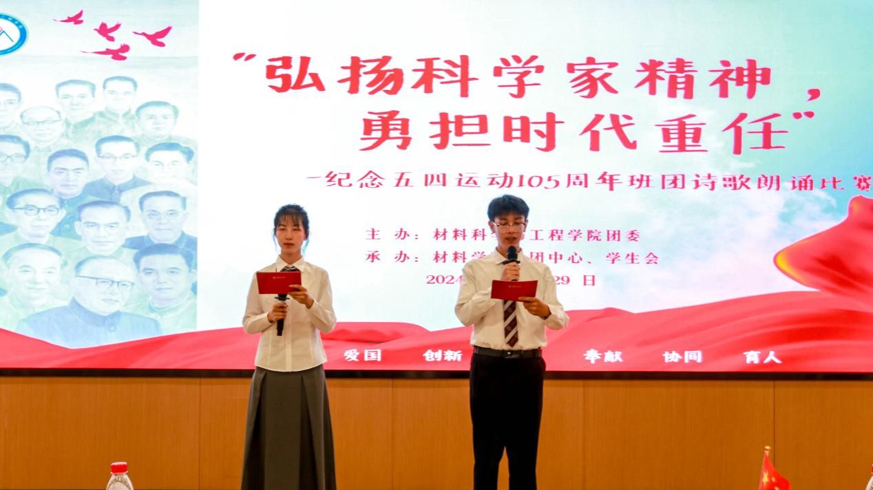 自主编排显材子青春才气,生动演绎热血澎湃颂科学。4月29日晚19:30,“弘扬科学家精神,勇担时代重任”——纪念五四运动105周年班团诗歌朗诵比赛决赛在图书馆一号报告厅拉开帷幕。材料科学与工程公司党委副书记熊钰,公司党委员工工作部立德树人教育发展中心指导老师薄琳,公司党委员工工作部扬华e媒体中心指导老师袁文林,马克思主义公司团委书记赵晨应邀出席。参赛班级导师楚珑晟、吴影、张振林,bevictor伟德官网辅导员代表、各团学组织员工干部及200余名本科同学参加。