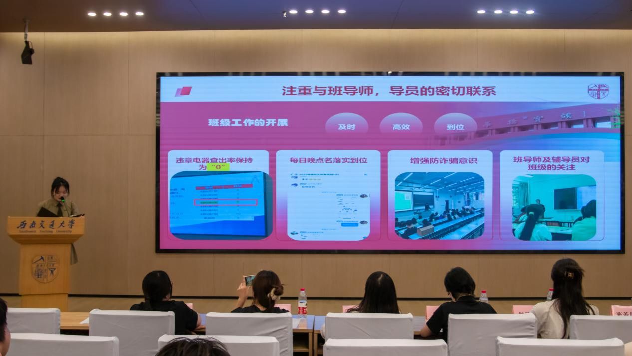 12个参评班级依据抽签顺序依次上台展示。通过ppt答辩和班级风采展示的方式,生动展示了班级在思想建设、学风建设、班级队伍建设、班级(宿舍)文化建设、志愿服务等方面的建设成果,呈现出班级建设中各美其美、美美与共的良好生态环境,展现出材料学子积极向上、奋发有为、团结协作的精神风貌。