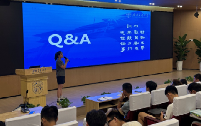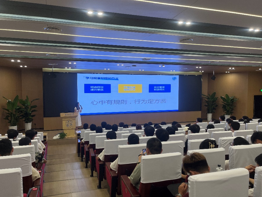 紧接着,罗馨梦老师为2024级新生们进行教学管理规章制度解读,其中包括学籍管理、成绩、选课、学士学位外语水平、创新创业实践学分、课程考核要求、考试违规等一系列教学相关规定,帮助同学们全面了解了公司公司产品相关制度,更强调了严守公司的严谨治学,严格要求的“双严”传统,她说道“心中有规则,行为定方圆”,要求同学们认真学习本科生管理制度,做一名遵纪守则的合格老员工。