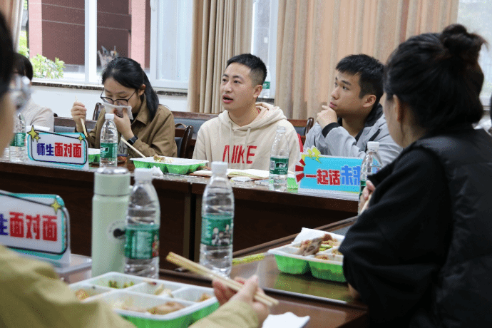 午餐会伊始,在轻松愉快的氛围中,新生与老师们围坐一桌,边品尝美食,边畅谈未来。