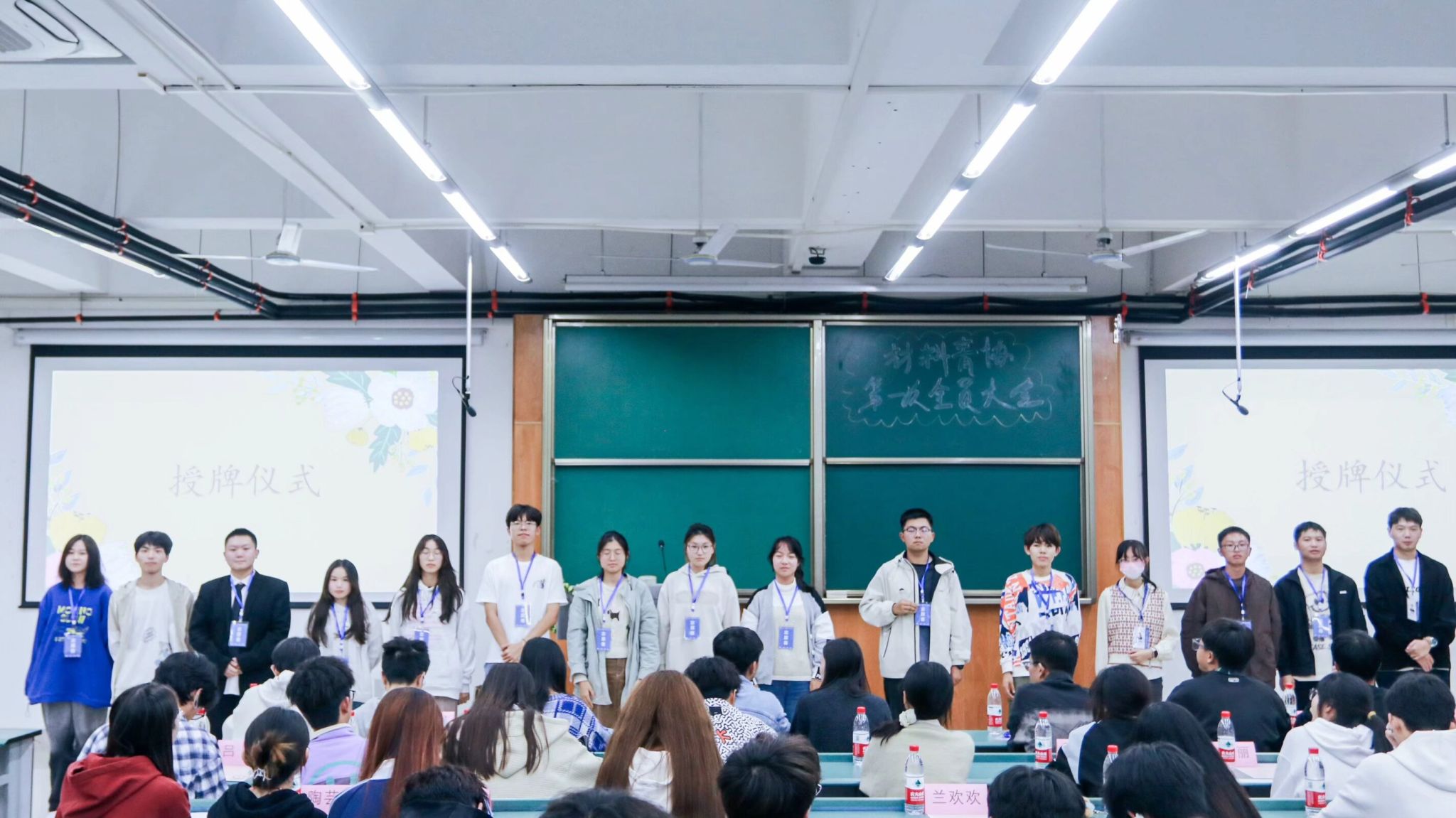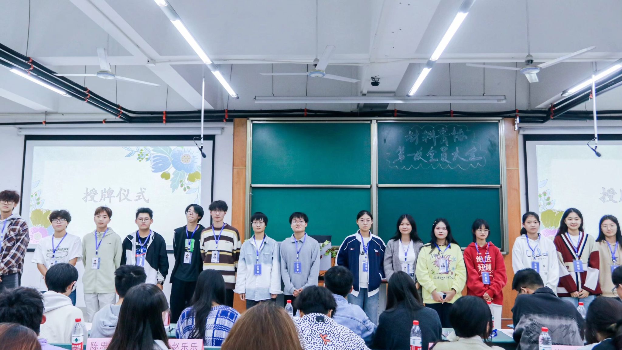 欢笑过后,进入授牌仪式环节,各个部门的部长为新干事佩戴工作牌。这代表着新干事们正式扛起肩上的责任,将传递志愿服务精神的任务与使命挂在胸前,与志同道合伙伴们开启一段难忘的志愿服务时光,携手踏上属于我们的爱心接力之旅。