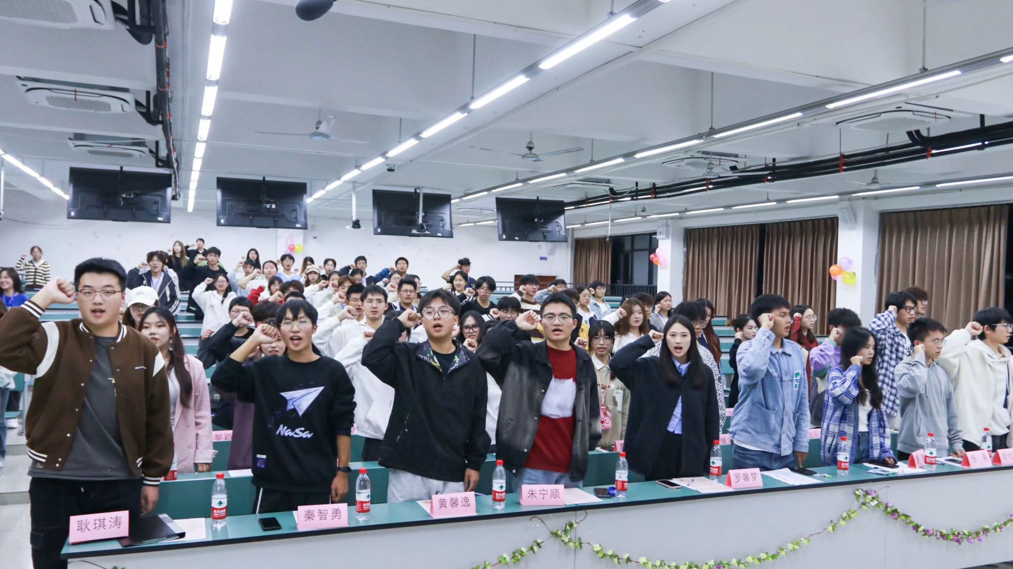 最后,材料青协外宣部部长陈啟博带领全体新生志愿者进行宣誓。全体志愿者紧握右拳,表情庄严肃穆,眼神坚定,声音铿锵有力,表现出对志愿者工作的无限热爱与支持。