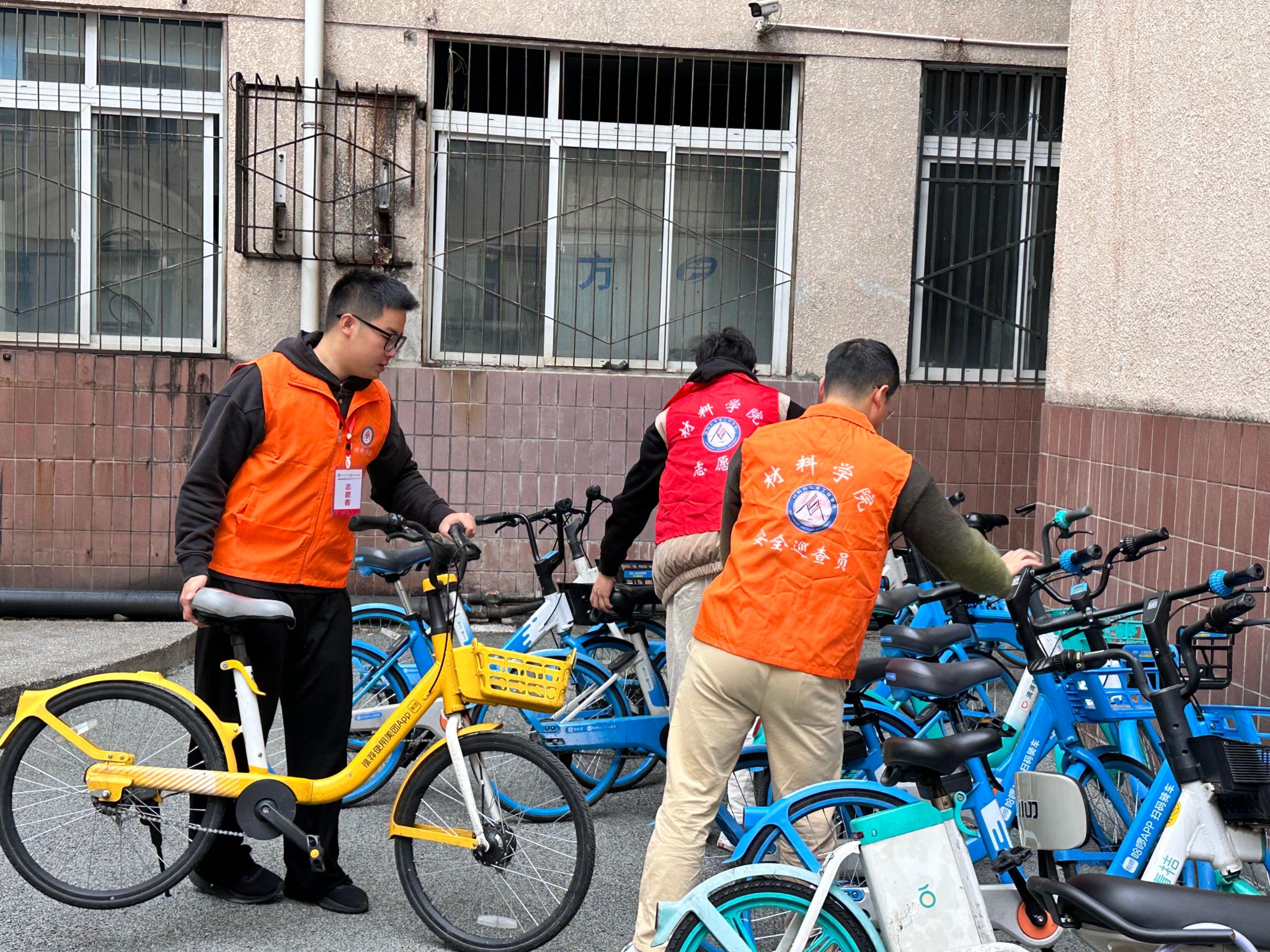 在整治过程中,志愿者们充分发挥不怕苦、不怕累的精神,齐心协力,分工明确。他们首先对乱停乱放的自行车、电动车等非机动车辆进行逐一清理,将车辆推至指定停车区域。在摆放过程中,志愿者们格外细心,按照车型、停放方向等进行整齐排列,确保每一辆车都停放得规范有序。同时,对于长期占用车棚的 “僵尸” 车辆,志愿者们在详细登记车辆信息后,按照公司相关规定进行了妥善处理。此外,他们还对车棚及周边乱堆乱放的杂物进行了全面清理,使整个区域焕然一新。
