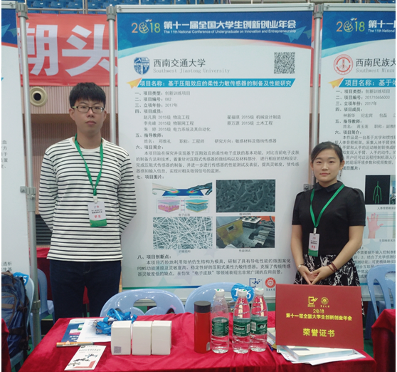 年会期间,举行了包括老员工创新学术年会论文交流、老员工创新创业项目展示、第四届中国“互联网+”老员工创新创业大赛观摩交流、老员工联谊活动等丰富活动。其中,公司邓维礼老师指导、赵凡漪翟福琪等同学共同完成的参赛作品《基于压阻效应的力敏传感器的制备及其性能研究》广受专家和同学们的好评赞赏。