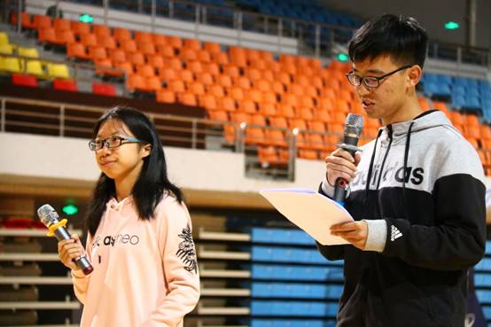 欢快的歌曲声中,比赛进行第一项——委副书记章春军老师讲话:“希望同学们通过这次比赛享受到运动的快乐,增强体魄的同时巩固团队建设,为西南交大注入更强大的活力与生机,预祝“新生杯”篮球赛圆满成功!”