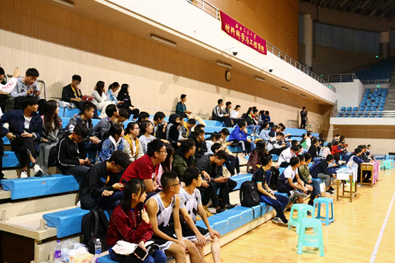 七点整,双方代表队皆已到达篮球场,进行赛前热身活动。观众席上座无虚席,热情满满。
