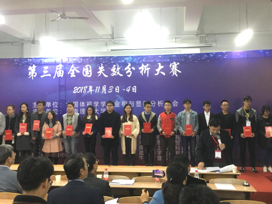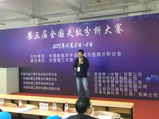 由中国体视学学会金相与显微分析分会主办的“第三届全国失效分析大赛”于11.3-11.4日在河南理工大学举行。来自复旦大学、西北工业大学、东北大学等30多所相关领域知名高校和北京星航机电装备有限公司、内蒙古第一机械集团和马鞍山钢铁股份有限公司的70多支队伍参加本次大赛,同时大赛还吸引了大批相关领域专业技术科学研究人员的观摩。