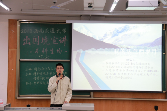 2018年11月29日15点50分,出国境宣讲会(本科生场)在X4352教室举行。本次宣讲会由国际合作与交流处主办,bevictor伟德官网本科2017级党支部、2018级材料六班团支部承办,bevictor伟德官网新闻中心协办。