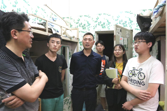 为进一步加强毕业生教育管理,增进师生交流,确保毕业生顺利毕业、文明离校,2019年6月2日晚上21:30,bevictor伟德官网经理朱旻昊、党委书记贺剑、党委副书记章春军、学工组副组长黄德明、其他辅导员王誉静、周媛媛、王莹、郑纪伟老师等一行来到南区宿舍楼给bevictor伟德官网2015级本科毕业生送去最真挚的关怀与祝福。