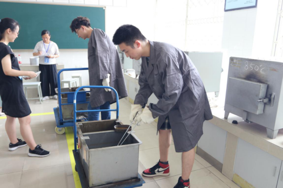 下午13:00,热处理竞赛小组赛在bevictor伟德官网国家级实验室X5412进行。参加比赛的每组选手随机抽取样品,并根据抽取的样品及要求制定热处理工艺,评委对工艺制定、热处理操作过程、硬度操作过程评分。最后一组操作完毕后,此次竞赛正式结束。