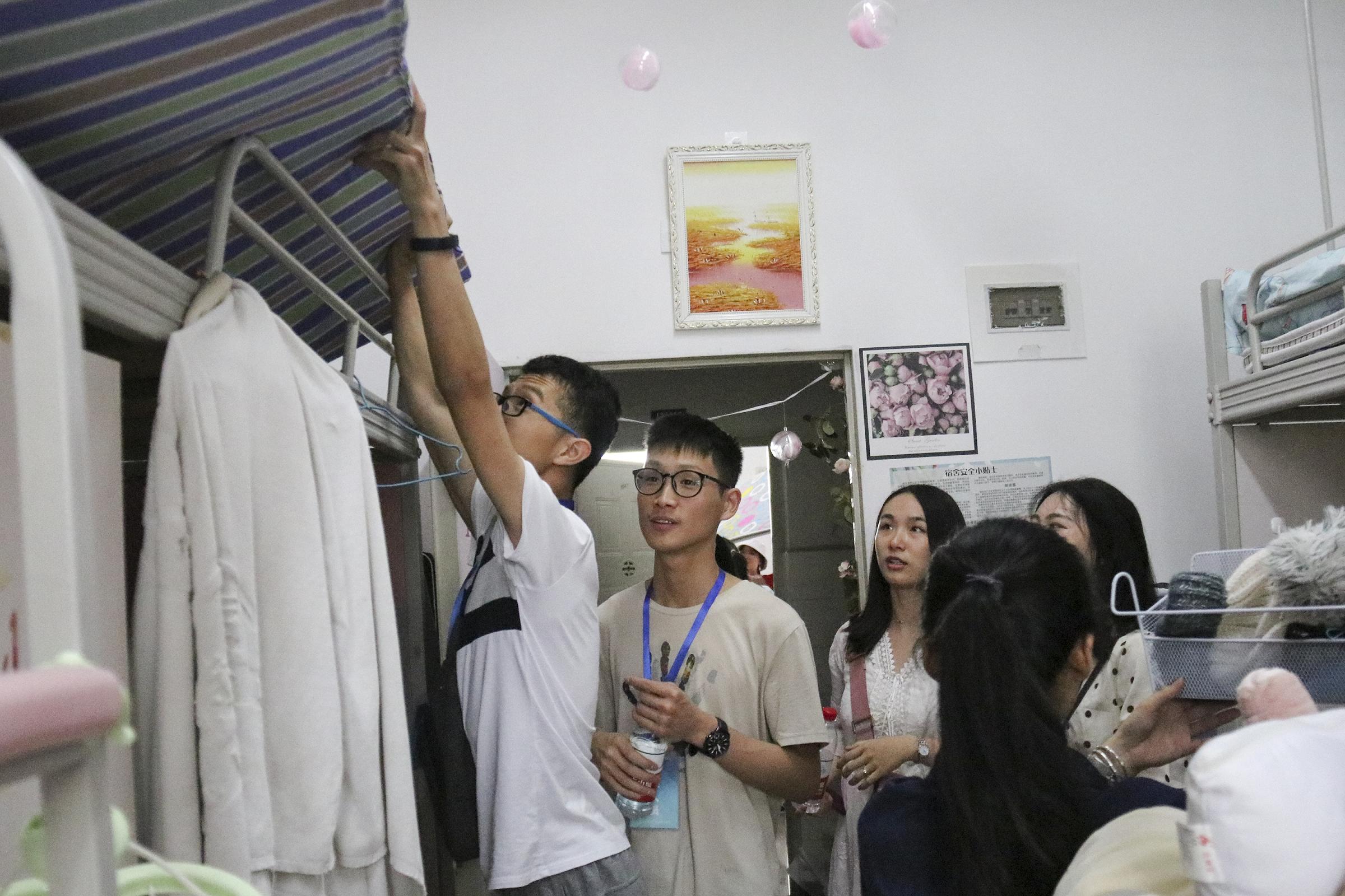 接着,男生寝室进行第二至第四批搬迁。与此同时,高分子二班的同学在搬迁完成后,赶到天佑斋15号楼,协助女生寝室搬运行李。女生寝室在老师、同学们的帮助下很快完成搬迁。